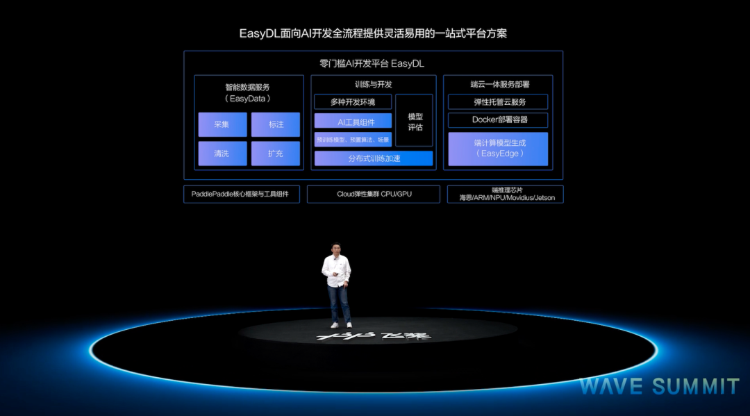 百度飛槳總架構師于佃海、百度深度學習技術平臺部高級總監馬艷軍在峰會上詳細介紹了飛槳開源深度學習平臺的最新進展。百度AI開發平臺部總監忻舟分享了飛槳企業版EasyDL零門檻AI開發平臺的全面升級。百度研究院量子計算研究所所長段潤堯重磅發布量槳。繼2019年11月的WAVE SUMMIT秋季峰會后,短短半年時間,飛槳全平臺帶來35項全新發布和重要升級,其中包括8大新產品和27項升級。