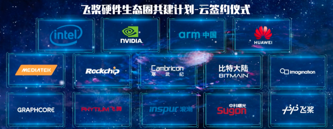 峰會上,飛槳聯合全球領先硬件廠商英特爾、英偉達、arm中國、華為、MediaTek、寒武紀、飛騰、浪潮、中科曙光等啟動共建硬件生態合作圈。同時還分享了近一年飛槳在農林、醫療、工業制造、消費類電子、電力能源、交通、環保等領域的十多個最新案例,切實助力國計民生,促進經濟恢復發展。
