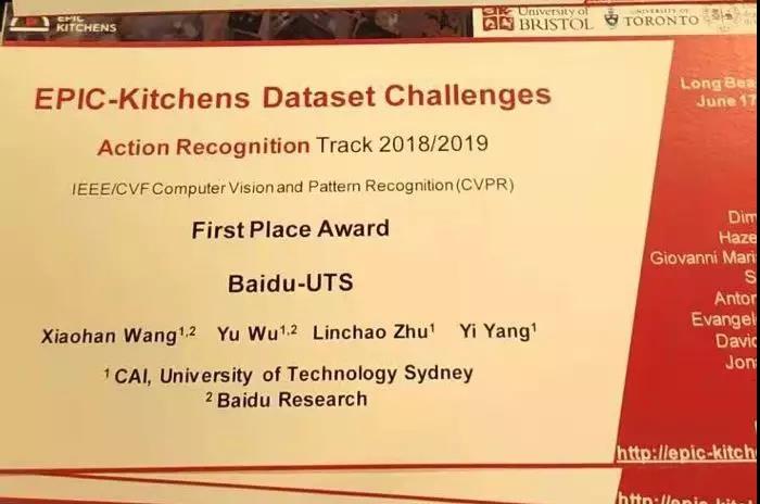 競賽吸引了 Facebook AI 、牛津大學、 INRIA (法國國家信息與自動化研究所)等66支隊伍參與,百度在該任務中的 Seenkitchens 和 Unseen kitchens 兩項測試集上以很大優勢獲得第一,并受邀在 CVPR 2019 EPIC 和 ActivityNet Workshop 上作出報告。