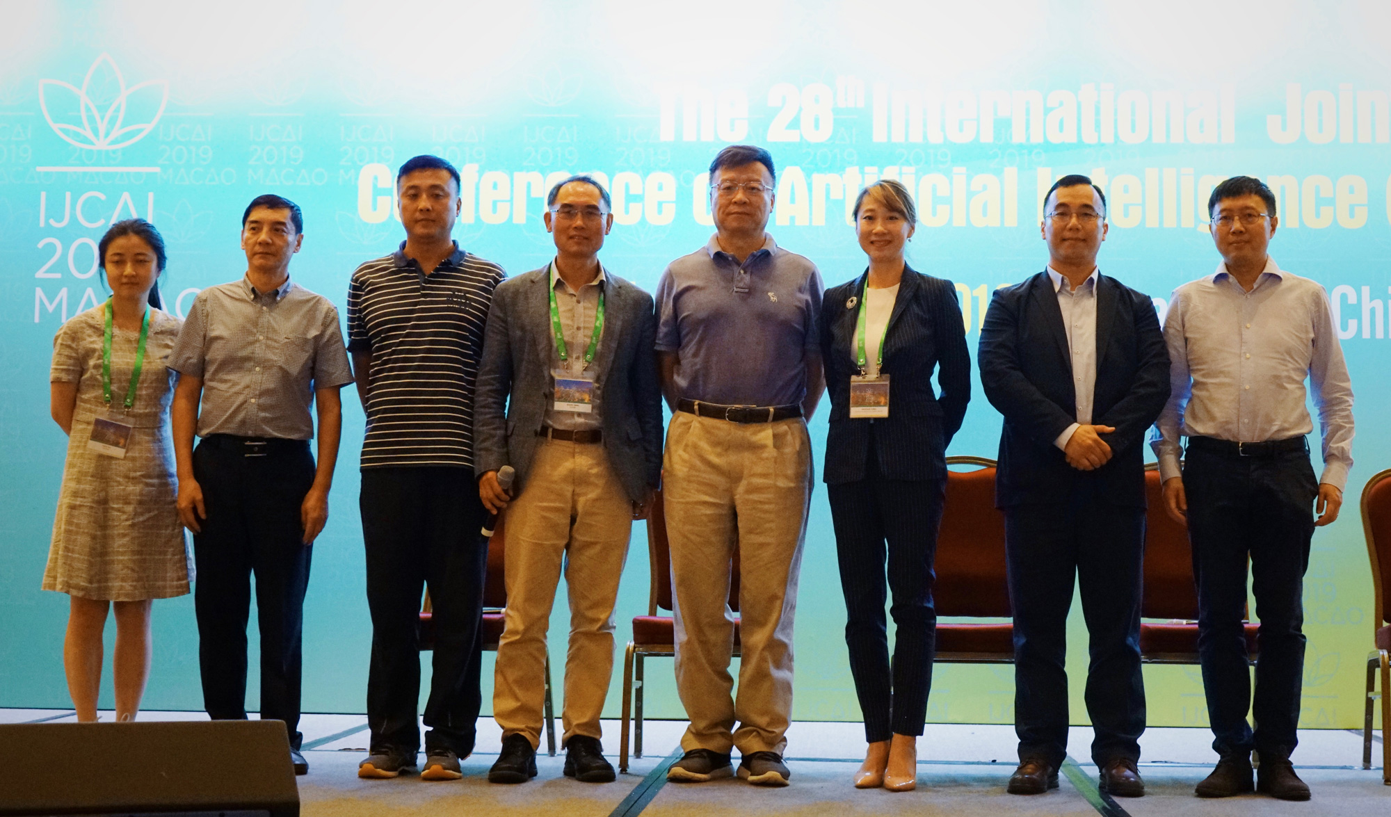 左起:微眾銀行科學(xué)家徐倩博士、GAIR秘書(shū)長(zhǎng)陸楠教授、HKSAIR秘書(shū)長(zhǎng)柳崎峰博士、IJCAI/HKSAIR理事長(zhǎng)楊強(qiáng)教授、鵬城實(shí)驗(yàn)室主任GAIR理事長(zhǎng)高文院士、港科大馮雁教授、MGBAI常務(wù)副理事長(zhǎng)鄺偉文博士、港科大張潼教授。