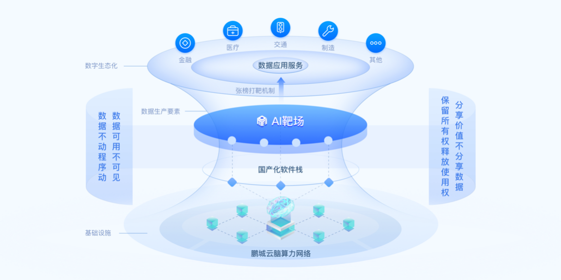 目前AI靶場依托以鵬城云腦為樞紐節點的中國算力網提供的強大算力資源,通過構建可信數據空間,以張榜打靶方式將數據安全開放,進而篩選具有核心競爭力的AI團隊, 實現數據應用集智創新。