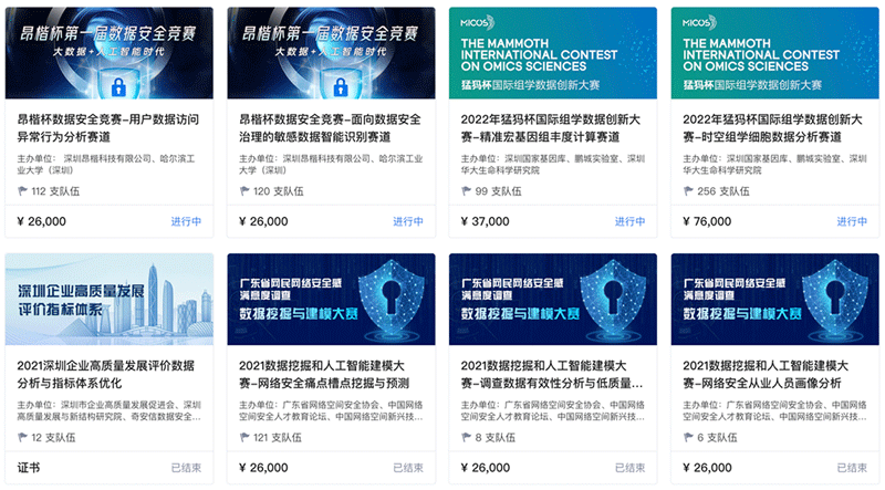 AI靶場目前已有力支撐了“2022年猛犸杯國際組學數據創新大賽”“昂楷杯第一屆數據安全競賽”“廣東省網絡安全協會數據挖掘大賽”、“深圳企業高質量發展評價指標體系”、 “騰景AI經濟預測”等多個重要領域的數據安全開放。