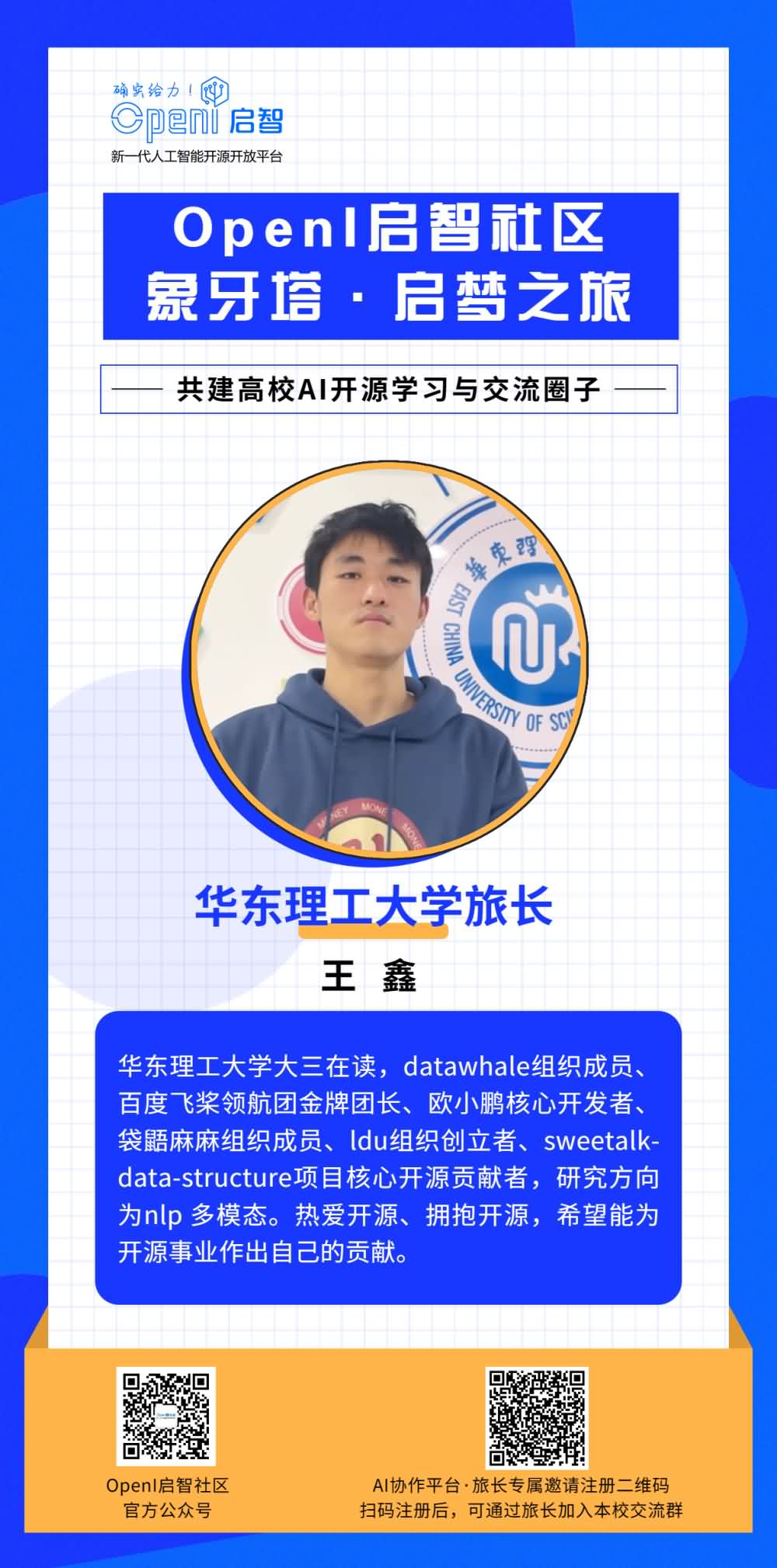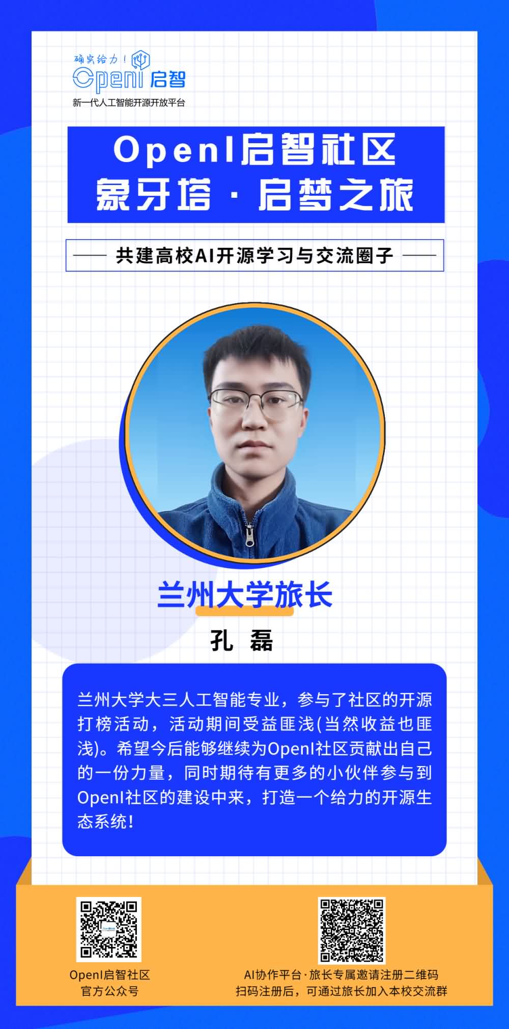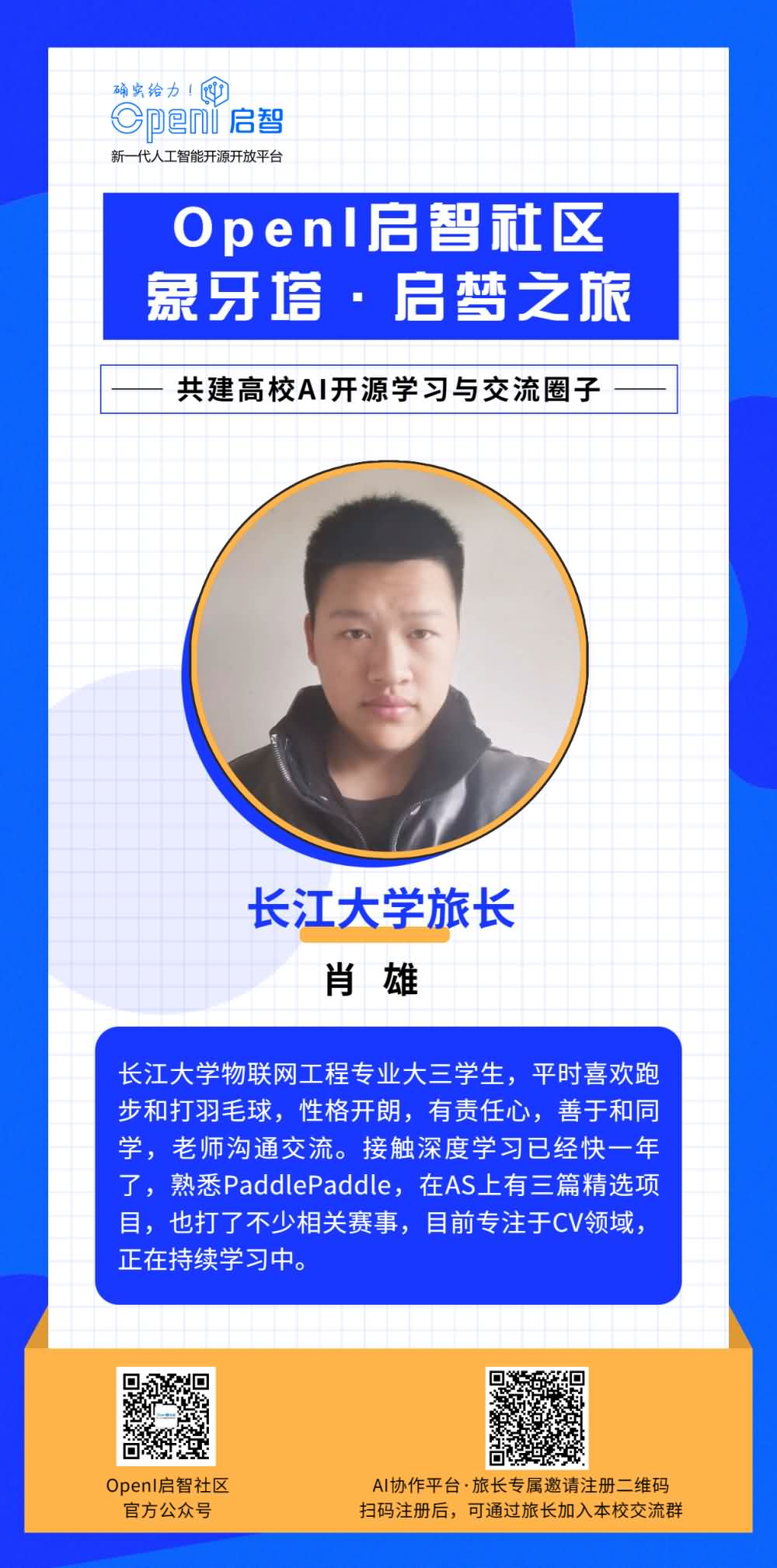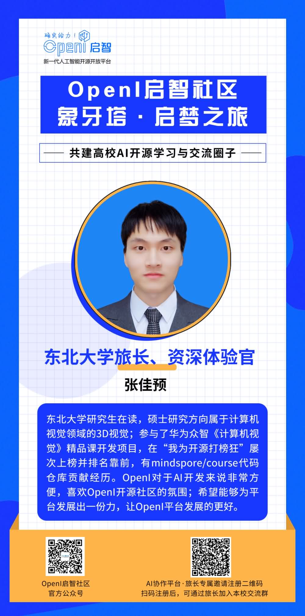 如果你也想成為一名旅長,有意幫助OpenI與本校同學(xué)之間建立更多的聯(lián)系,歡迎通過下方海報上的二維碼進(jìn)行申報。